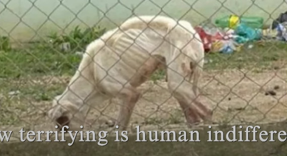 His body, once muscular and full of life, was reduced to skin and bone as he slowly wasted away, starved by his own owner.