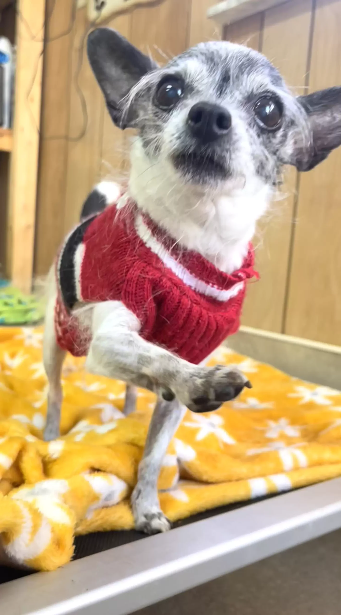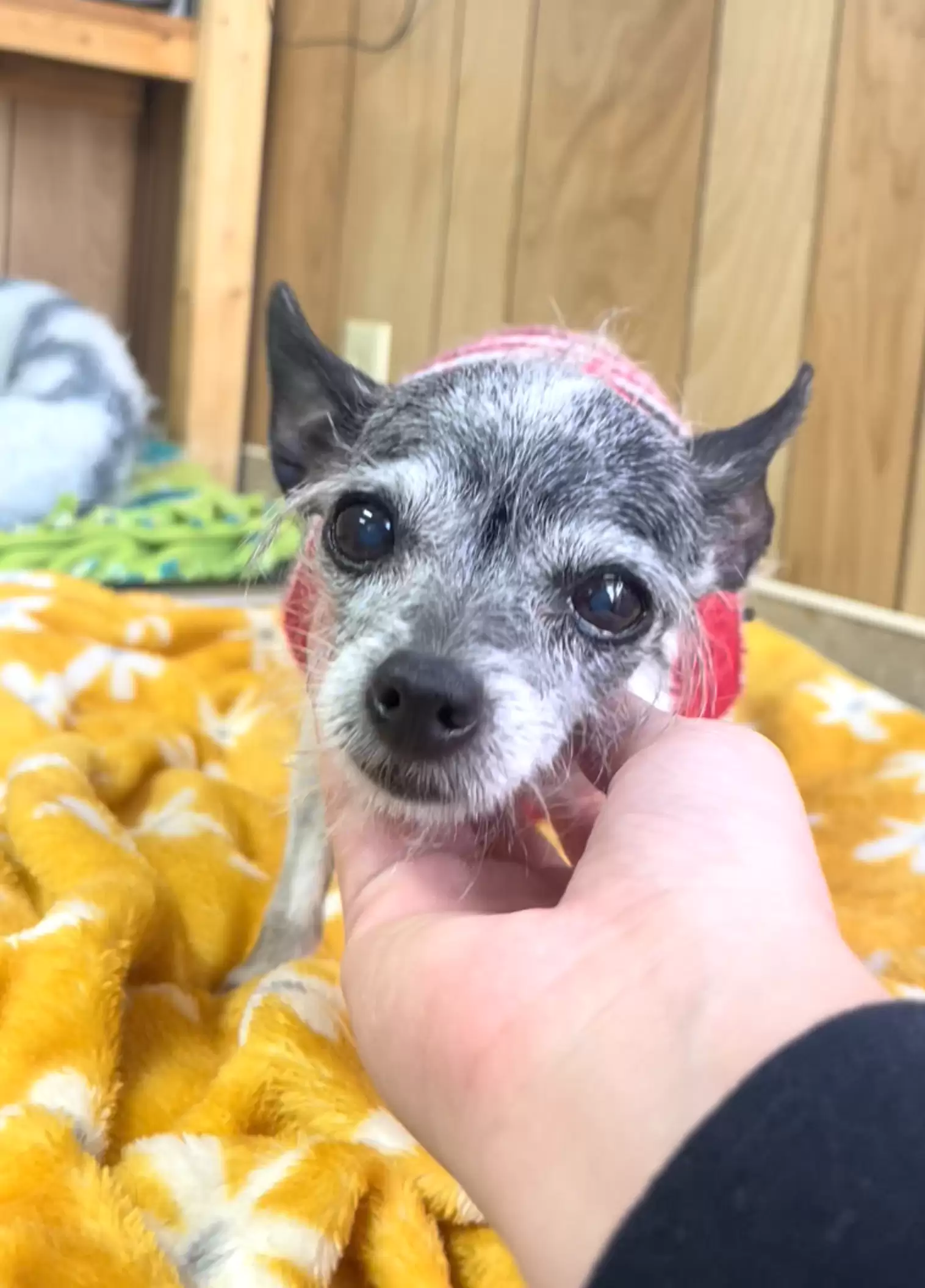 Apparently, Twinkle would scream all through the night because she wanted to sleep in bed with her new parents. The family had other senior Chihuahuas as well and wouldn’t let any of them sleep in bed with them, so they decided Twinkle wasn’t a good fit and brought her back to the rescue.