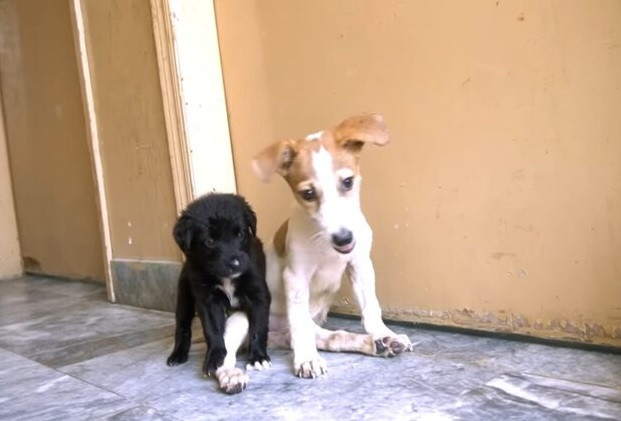 As they processed the tragedy, a bystander mentioned another puppy nearby, possibly the deceased dog’s sibling. Acting quickly, the rescue team searched the area and found a small, struggling pup drinking from a sewer.