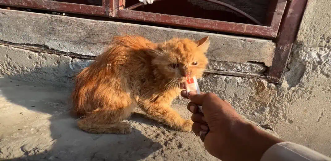 She made no sound of distress, as if she had already accepted her fate. But the stranger refused to walk away. Speaking softly, they approached with patience, offering a warmth the cat hadn’t known in a long time.