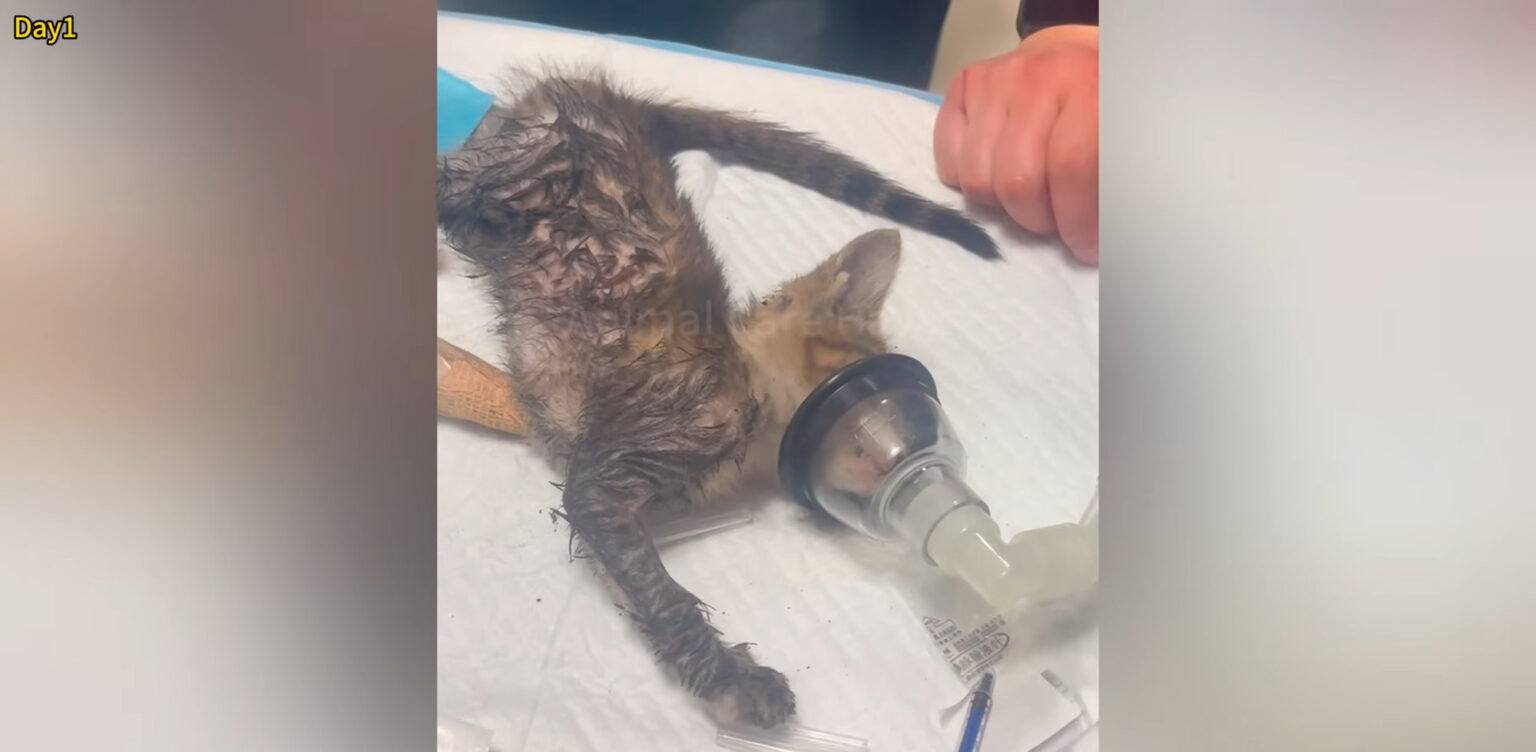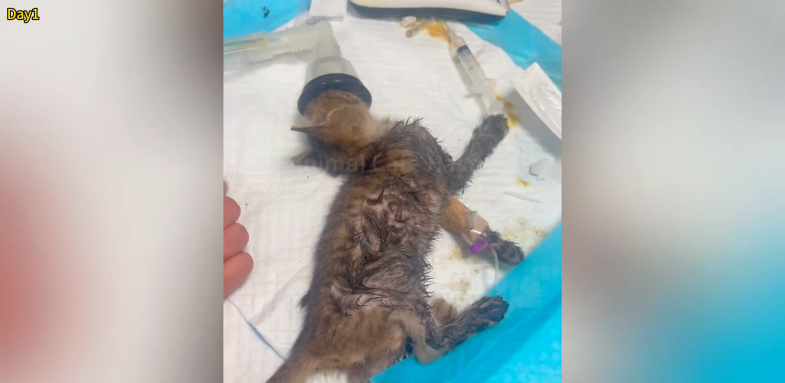We hurriedly called for a car and rushed the kitten to the hospital. Upon arrival, the doctor conducted X-rays and provided him with much-needed nourishment.