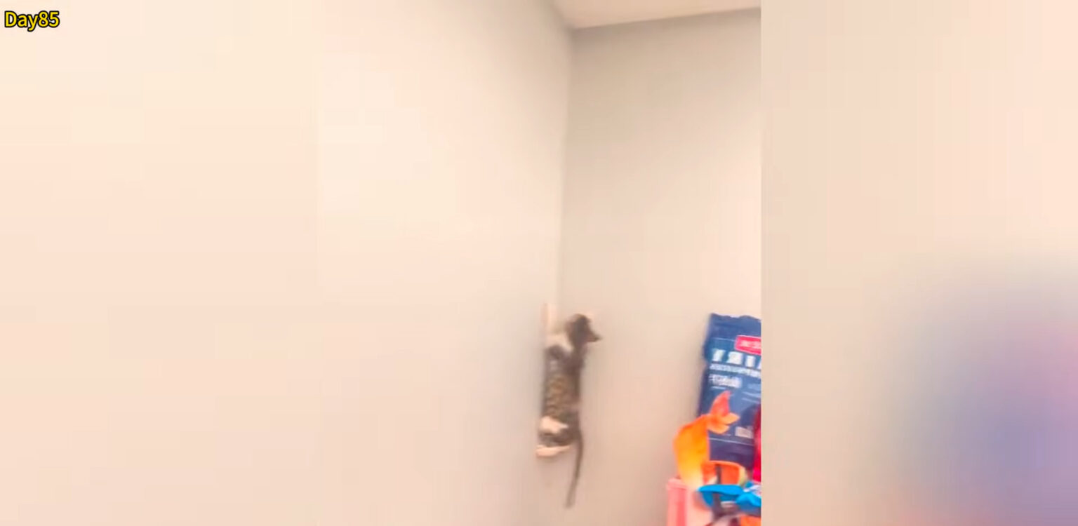 After ninety days, Six-Six returned home, full of energy and mischief. He climbed walls, scattered cat litter, and playfully teased other pets.