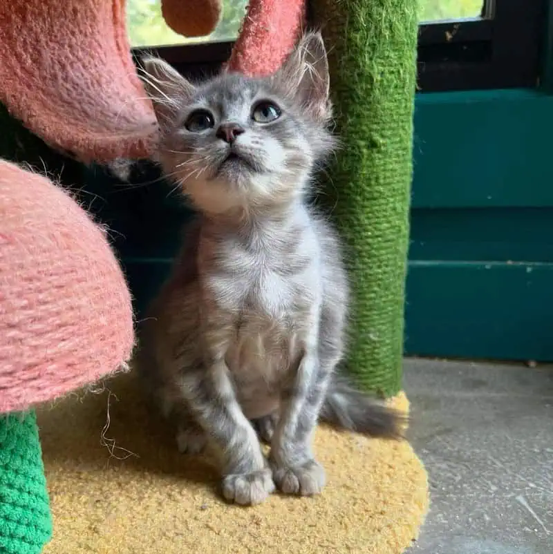 It’s astonishing that Furby was a scraggly little creature with little fur just a few weeks ago. Today, she has blossomed into a beautiful young cat full of energy and spirit. “With her goofy head and unique coat, I couldn’t be more enamored with her,” Deej concluded.