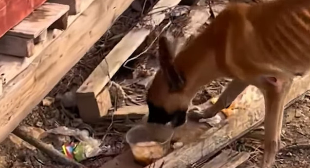 A passerby, shocked by the sight, quickly offered food and called a rescue team. When they arrived, the dog was still eating frantically.