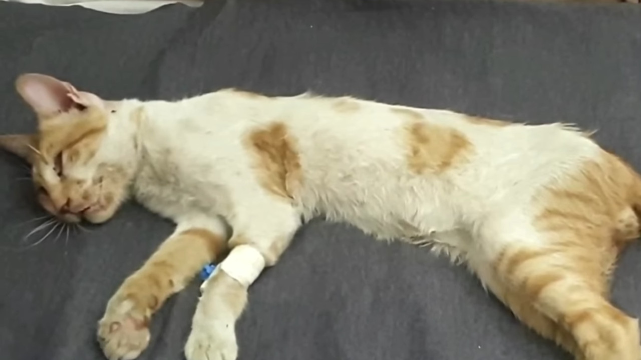 In a hidden alleyway, a small cat lay motionless, a victim of brutal abuse. Its body was broken, its back legs paralyzed, leaving it unable to move. Only its eyes, wide with fear and desperation, betrayed its living presence.