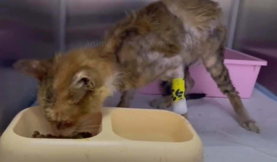 On a warm July afternoon, a woman walking her dog noticed a frail, skeletal cat struggling on the street. His body was so thin it looked like he could disappear with a gust of wind.