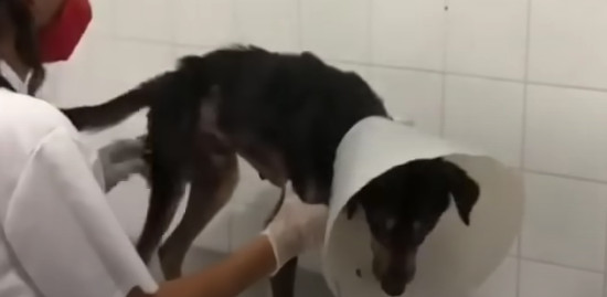 The dog, now named Black, was suffering from anemia, malnutrition, and a severe tick infestation. He needed immediate care.