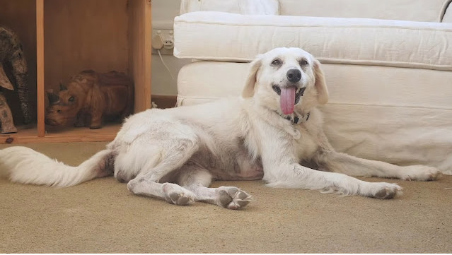With time, she transformed completely. Medical treatments restored her beautiful white fur, and her spirit began to shine. But the biggest change came when she found her forever home.