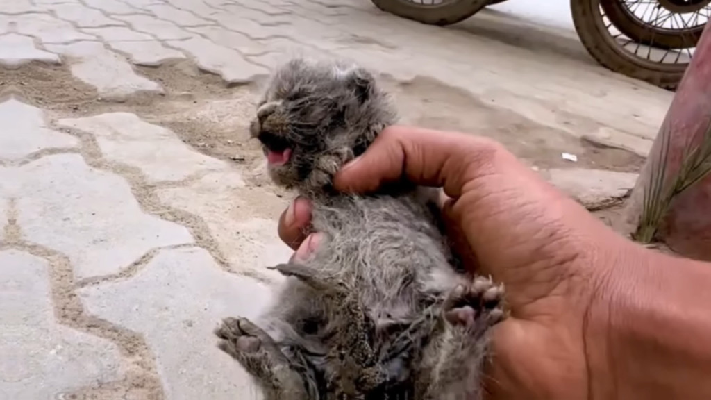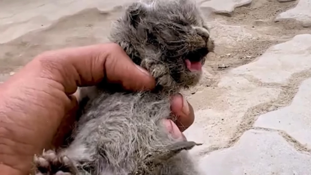 A small gray kitten, barely a few months old, found herself alone on the streets in the dead of winter. Her fur was damp, her paws frozen from wandering on the icy pavement.