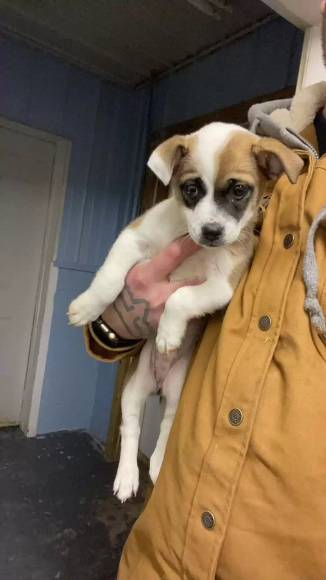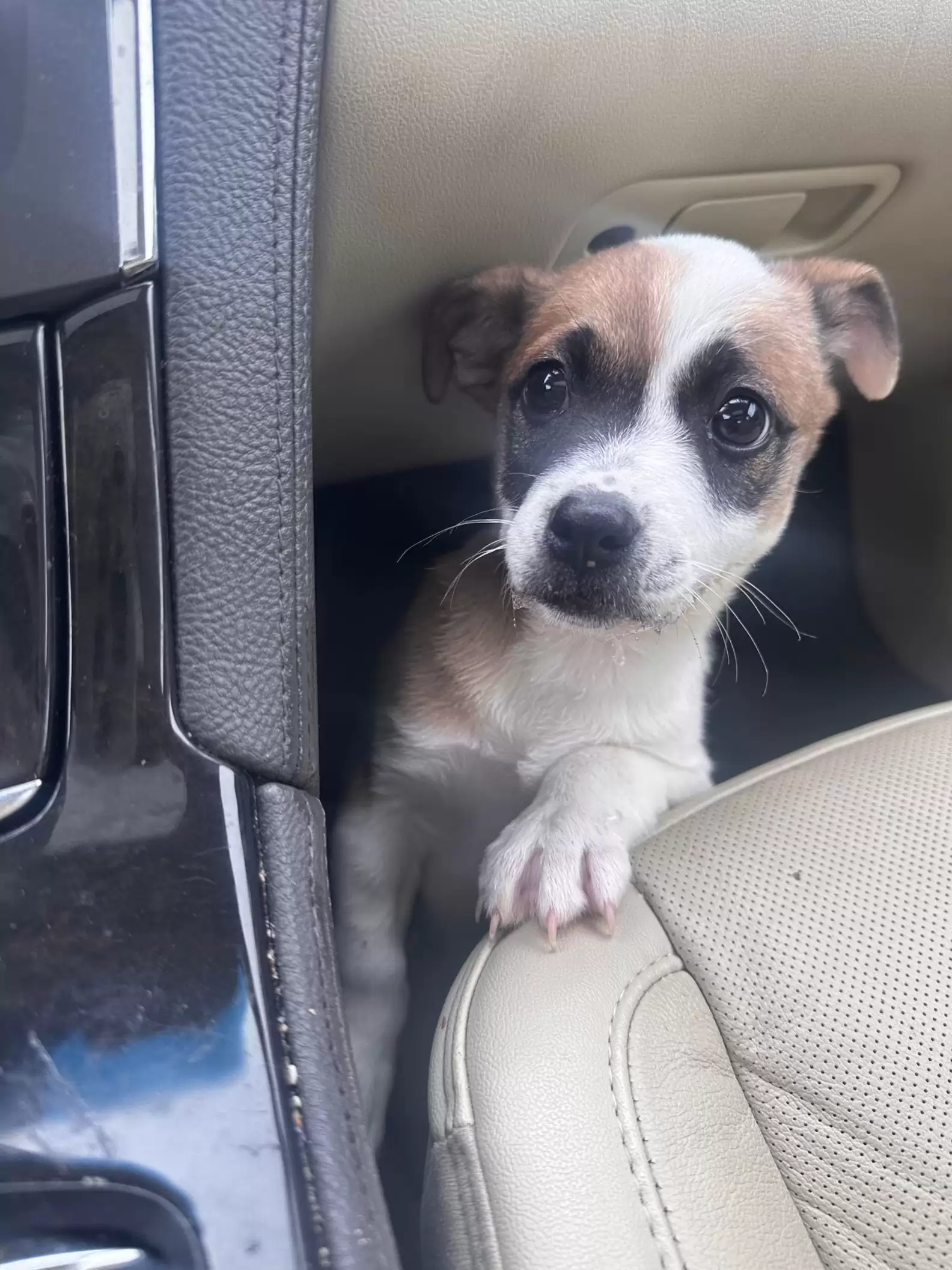 Speeding down a Kentucky roadway, a driver spotted something that made them slow down. A tiny brown and white puppy tied to a broken tree sat patiently waiting near the pavement. The driver contacted a local shelter, and a rescue team rushed to collect her.