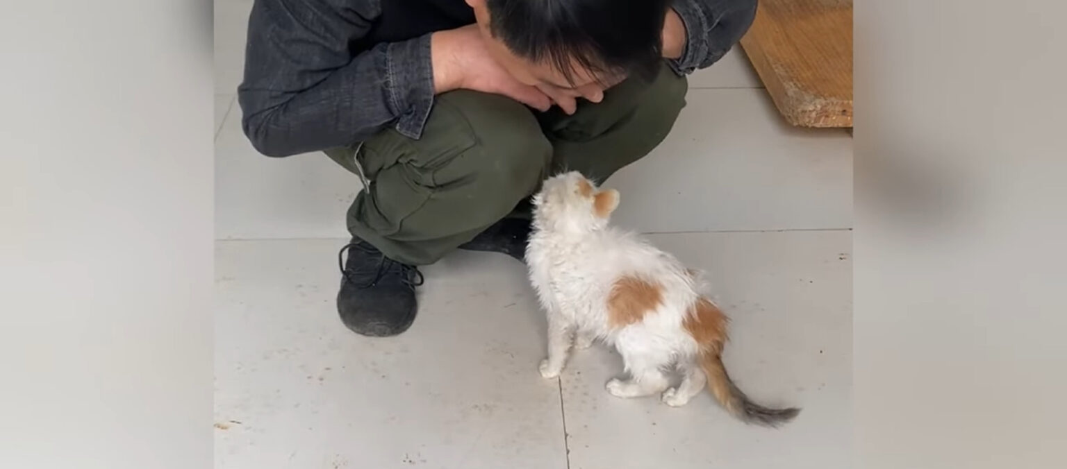 Hunger gnawed at its fragile body as it searched the rubble for scraps of food. Its cries, faint but desperate, echoed through the desolation, a plea for help that seemed to go unanswered—until a kind soul appeared.