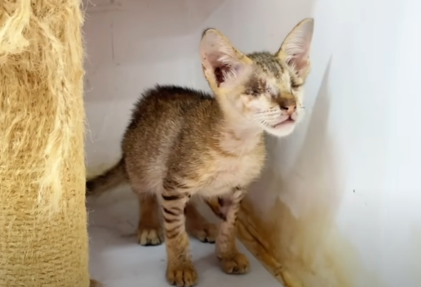 As I approached, my heart sank. Both kittens had severe eye problems—one had two bulging eyes, while the other had just one protruding eye.