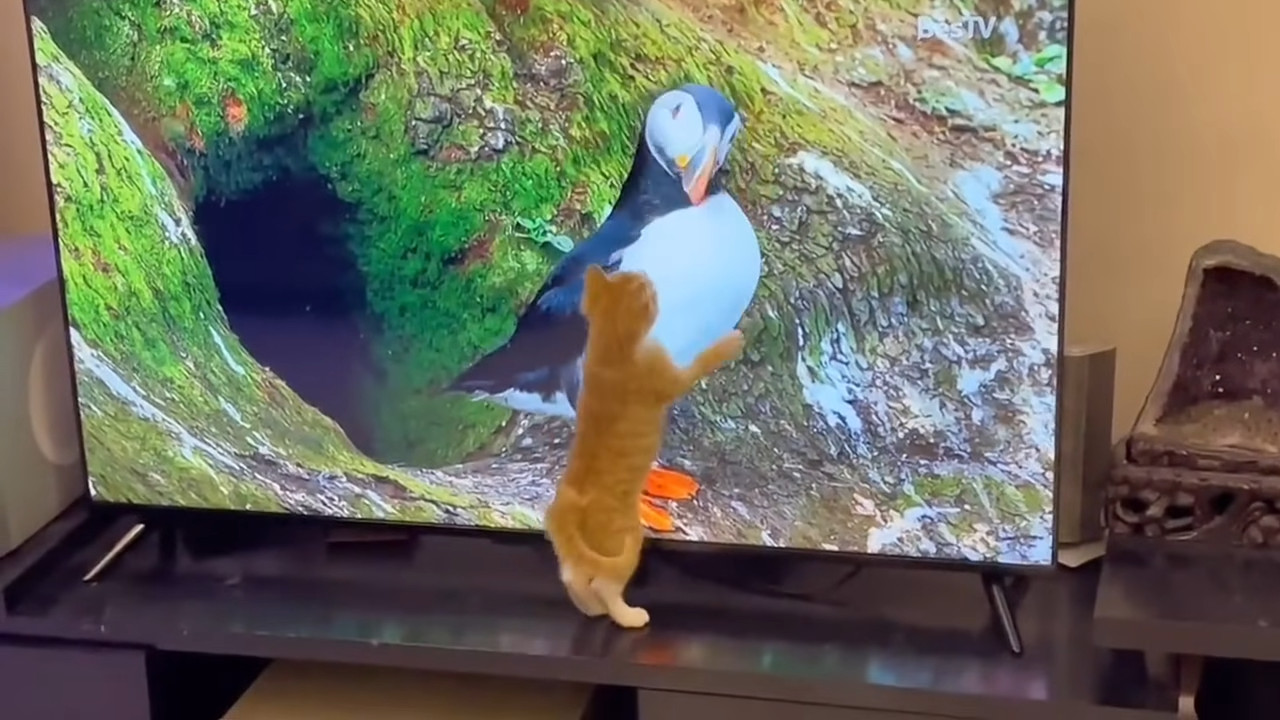 Once in its new home, Nar adjusted quickly. The once-weak kitten became an energetic, playful cat, fascinated by television, especially animated fish and aquariums.